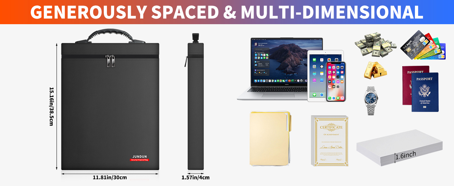 PORTABLE FIREPROOF BAG:Carry important documents securely on the go with this fireproof bag for documents (12”x15”x2”). Designed for daily use, it fits in offices, cars, luggage, or bank trips—store cash, contracts, or legal papers safely. Reinforced double-stitched zippers hold heavy loads without damage, tested for durable transport. Whether commuting, traveling, or storing at home, this bag ensures your critical documents stay protected and accessible—no compromise on security or mobility