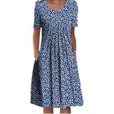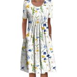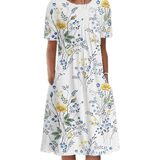 Features:women boho floral short sleeve midi dress,crew neck loose fitting flowy sundress,bust front pleated aline sexy beach vacation dresses.
