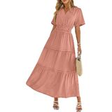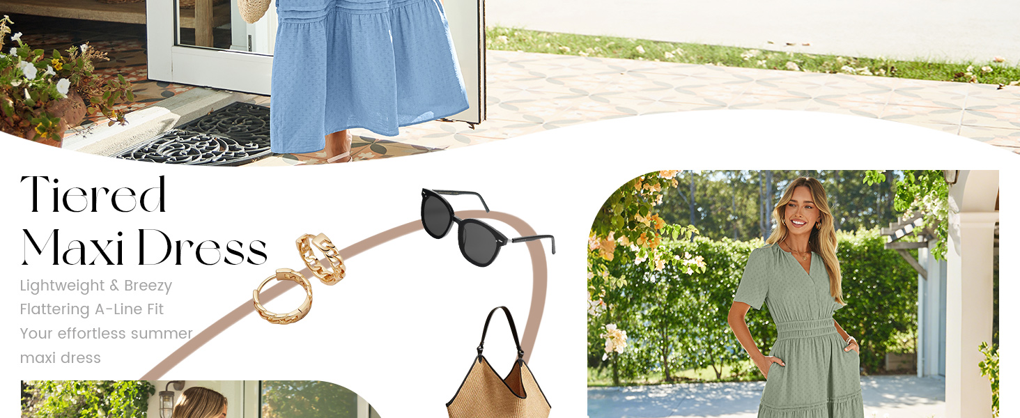 Features - maxi dress for women,short sleeve dress for women,v neck dress for women,smocked dress,drop waist dress,tiered dress,ruffle dress,dress with pockets,a line dresses for women,fit and flare dress for women,flowy dresses for women,floral dress for women,solid color dress for women.