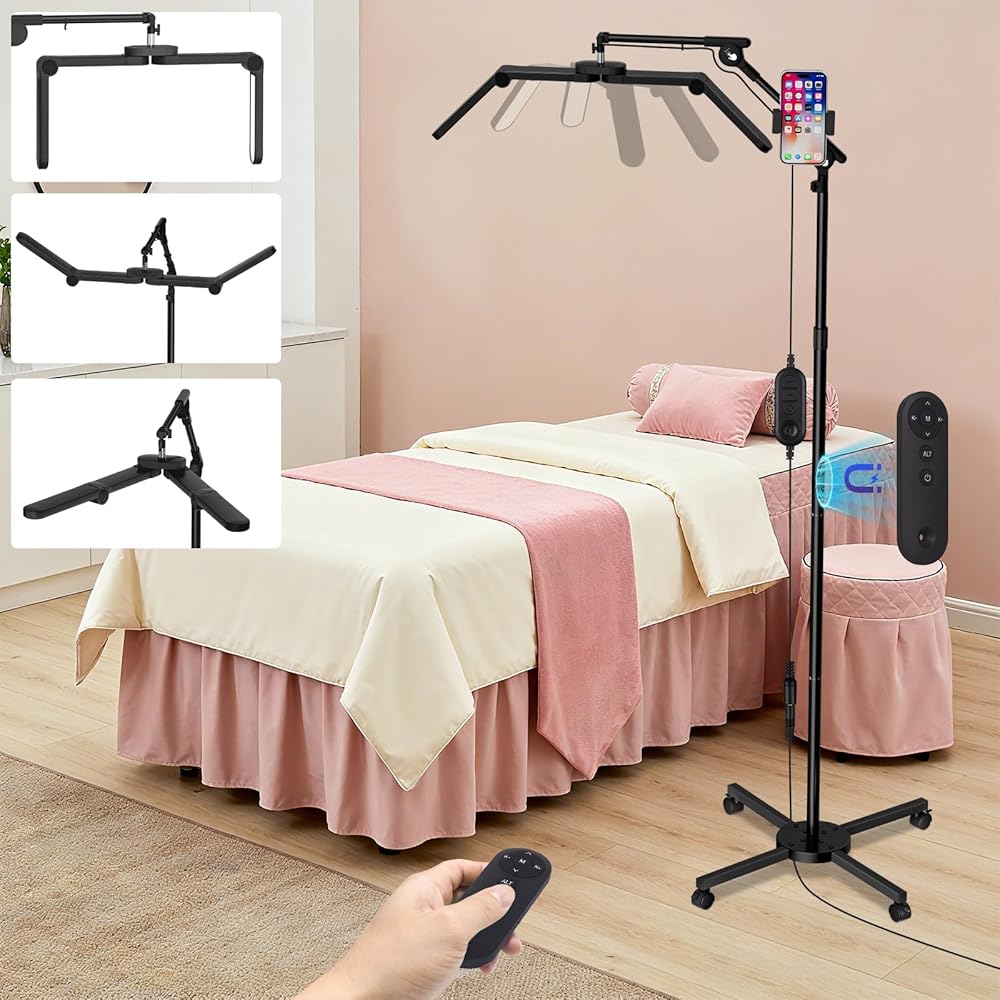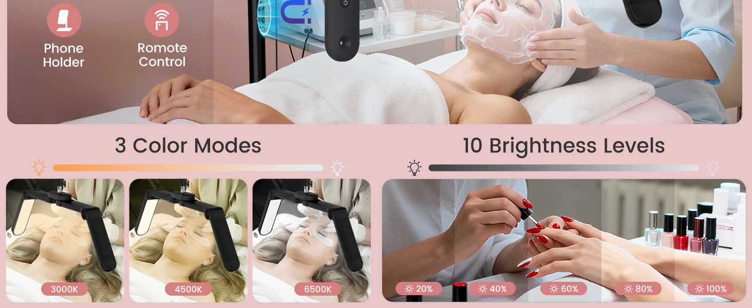 Roller Cross Base & Phone Holder: Lash lamp has 360° rotating casters for smooth, effortless movement. One-click brake locks it steady—no constant readjustments. Plus a 360° rotating phone holder with smooth angle tweaks: free your hands for nails or tattoos while watching tutorials, recording work, or checking notes—fast and precise.