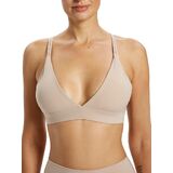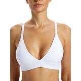 FLATTERING DEEP V-NECKLINE: Designed with a sophisticated plunged V-neck and delicate double thin straps, this bra enhances your natural silhouette. It's the perfect blend of feminine style and athletic performance for the modern active woman.