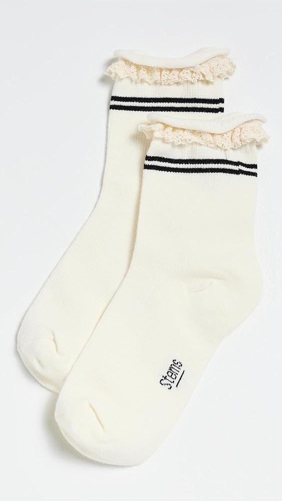 STEMS Women's Pointelle Contrast High Ankle Socks