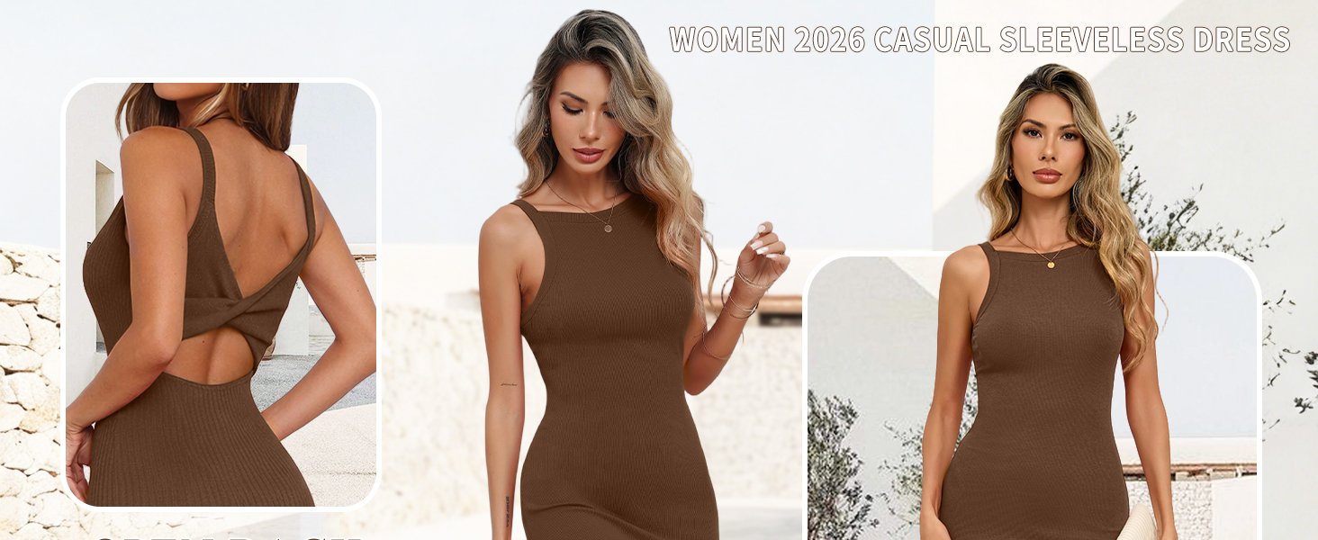 [High neckline & Sleeveless – Sexy Elegance for Every Occasion] This women's dress features twist backless and sleeveless design that adds subtle sexiness while keeping a polished look. As a versatile staple, it works perfectly for wedding guest events, date night, birthday party, going out, homecomings, and everyday dinner—effortlessly fitting your busy lifestyle with timeless charm.