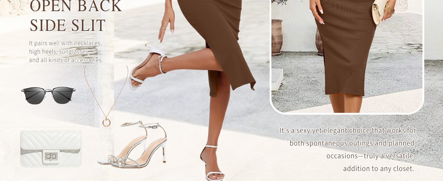 [Ribbed Stretch Fabric-Comfort & Flexibility for Daily & Travel] Crafted from premium ribbed knit material, this stretchy dress offers exceptional elasticity that hugs your curves without restriction. The soft, breathable fabric is perfect for going out party ,daily errands, or vacation getaways-keeping you comfortable whether you're commuting, exploring a new city, or relaxing on vacations. As a figure-flattering bodycon style, it balances comfort and style for all-day wear.