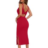[Twist Back & Knee-Length Split-Trendy Details for Festive Moments] Stand out with the dress's eye-catching twist back and knee-length side split.It's ideal for music festivals,cocktail parties,and girls'night out—combining on-trend details with practicality.The split design also makes it suitable for weekend brunches or short trips,blending fun and functionality.