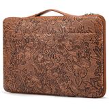 The Kinmac 360° Heavy Duty Protective Laptop Sleeve combines style and security in one stunning package. Crafted from premium PU leather with an intricate embossed floral pattern, this sleeve transforms your everyday tech accessory into a statement piece. The detailed botanical design features hibiscus, plumeria, and tropical leaves that create a sophisticated, nature-inspired aesthetic in warm brown tones. Built for serious protection, this sleeve offers 360-degree coverage to shield your laptop from bumps, scratches, and daily wear. The heavy-duty construction ensures your device stays safe during commutes, travel, or storage. The convenient top handle makes carrying effortless, while the secure zipper closure keeps everything protected inside. Whether you're heading to the office, a coffee shop, or across the country, this laptop sleeve delivers both functionality and elegance. The embossed pattern adds texture and visual interest without compromising the sleek profile, making it perfect for professionals who appreciate distinctive design details.
