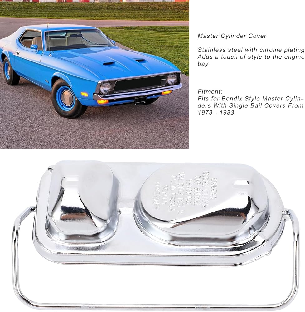 Master Cylinder Cover High Durability Anti Corrode Chrome Finish for Bendix Style Master Cylinders 1973-1983, 2 3/4in X 5 3/4in Size, Crafted from Stainless Steel