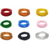 Add a vibrant touch to your style with this stunning set of nine traditional waist beads in a gorgeous rainbow of colors. Each strand measures 42 inches of beads strung on durable cotton string. The set includes an array of eye-catching hues - from deep reds and warm oranges to cool blues and elegant blacks - allowing you to mix and match for endless styling possibilities. These versatile body beads can be worn as single strands or layered for a more dramatic effect. The cotton tie-on string ensures a comfortable, adjustable fit for most body types. Each strand is carefully crafted to provide both beauty and durability, making them suitable for long term wear.