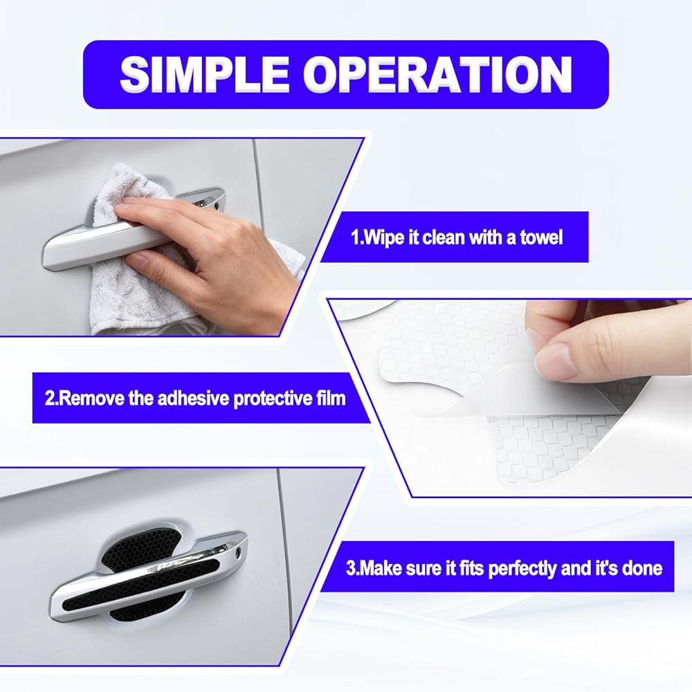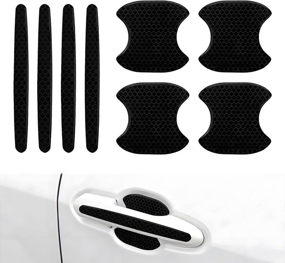 Keep your car's door handles and bowls free from scratches caused by fingernails, keys, and daily wear. This protector set combines durable protection with a sleek, low-profile design to maintain your vehicle's style. Made from high-quality prism reflective material, these stickers are wear-resistant, waterproof, and built to last. They stay firmly in place without leaving residue.