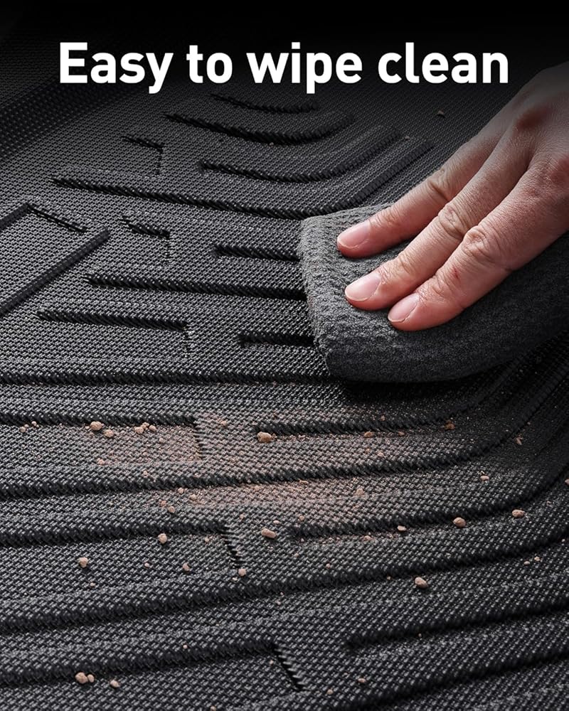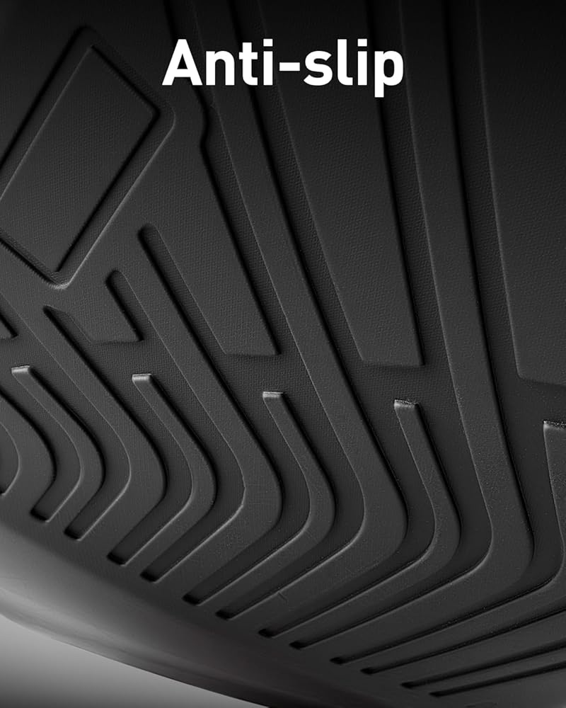 Secure Non-Skid Surface: The floor mats feature a textured surface that keeps objects in place and prevents shifting while driving. Precision-cut holes align perfectly with factory mounting points, ensuring the mats stay firmly in position without sliding. Installation is simple and does not interfere with pedals or other driving functions, providing stable and reliable use