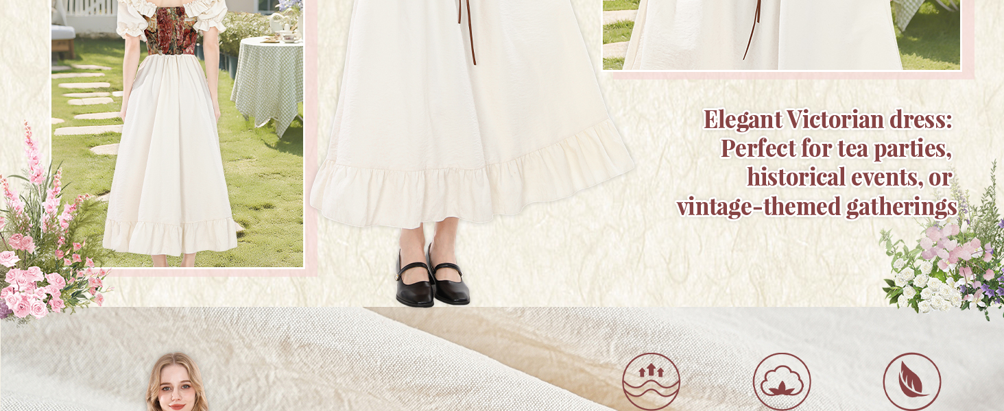 Occasion: This victorian costume women can be used for renaissance dress, medieval dress, victorian dress, fairy dress, wedding dress, tea party dress, school themed dress, halloween costumes, and other occasions. It can also be used as a dressing choice for daily pursuit of unique retro style, easily creating an elegant classical atmosphere and styling