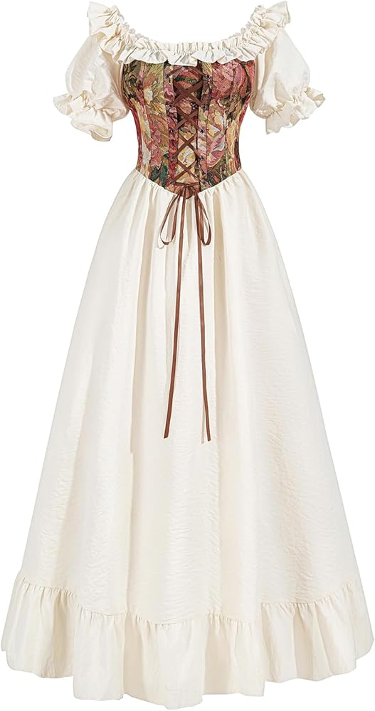 Fabric: This corset renaissance dress for women is mainly made of skin friendly, breathable, and soft cotton fabric. The upper body of victorian dress for women was made of colorful jacquard fabric, presenting an artistic retro feeling; The fine count and delicate texture of the lining yarn of the fairy dress can enhance the overall texture of the fabric
