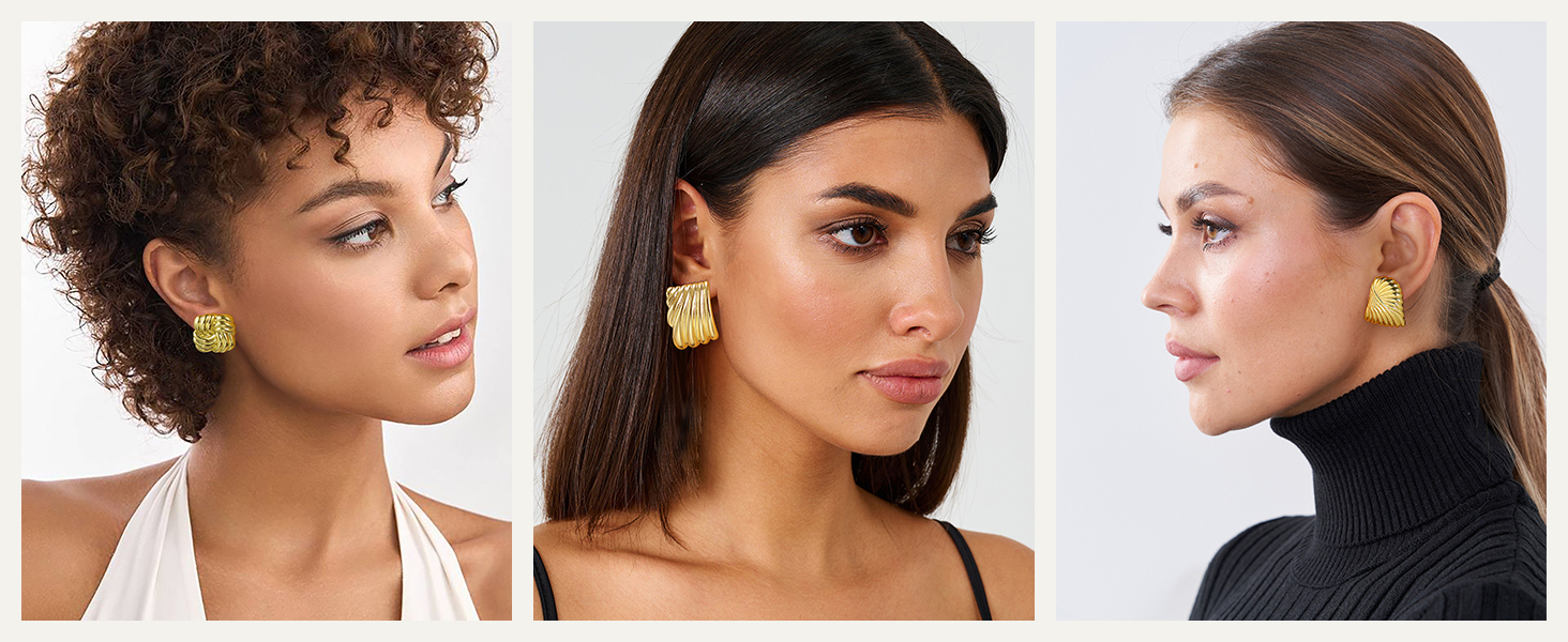 • Gold Seashell Stud Earrings Trendy 2025: These gold statement earrings with ocean waves and seashell design that blends vintage style that blends aesthetics with contemporary fashion trends. Chunky gold earrings for women, bold and eye-catching, easily matches any outfit.