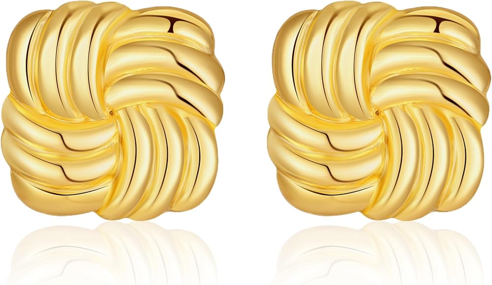 Gold Statement Earrings for Women Trendy Chunky Gold Earrings Geometric Earrings Wings Feather Textured Earrings Square Shell Textured Stud Earrings Fashion Jewelry in Kuwait