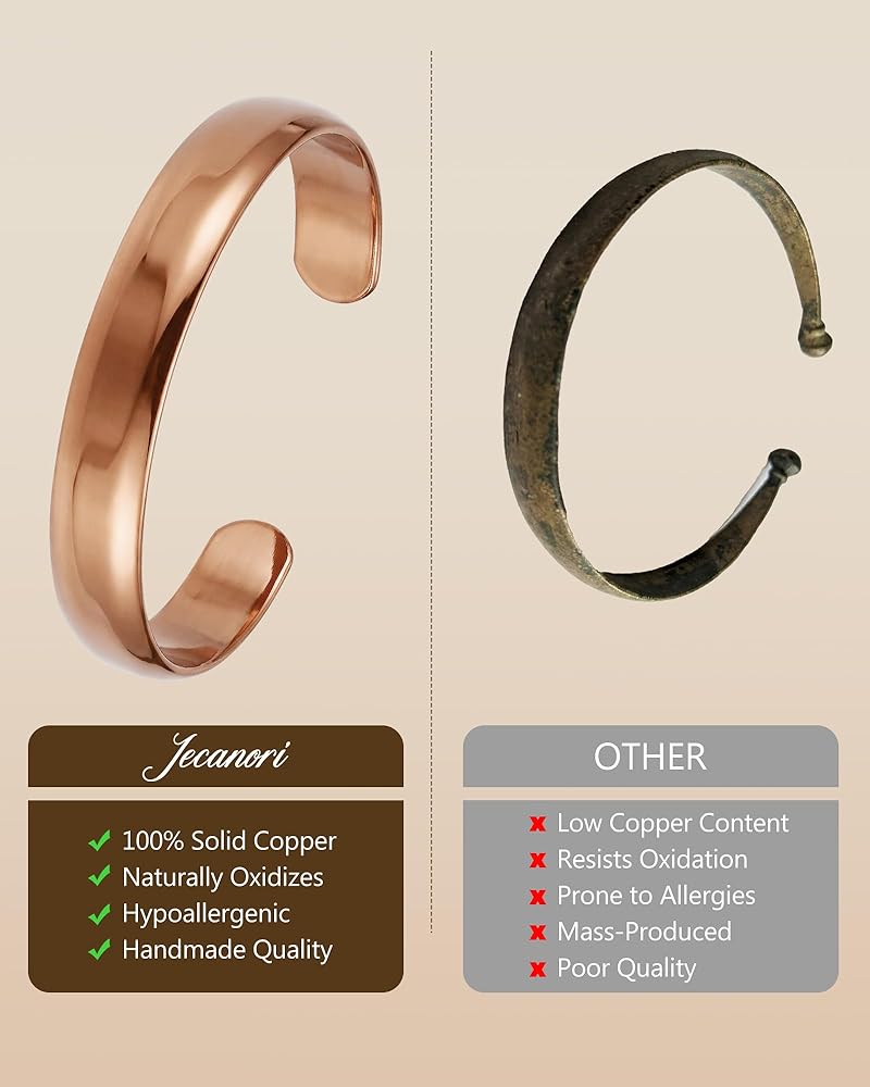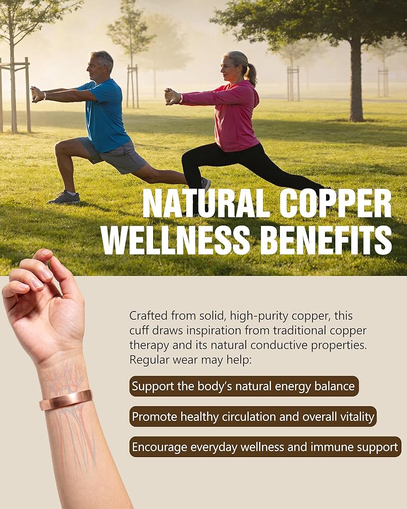 Natural Copper Patina Notice — Pure copper may naturally oxidize or darken over time due to skin contact and environment; this is normal and can be easily cleaned to restore shine.