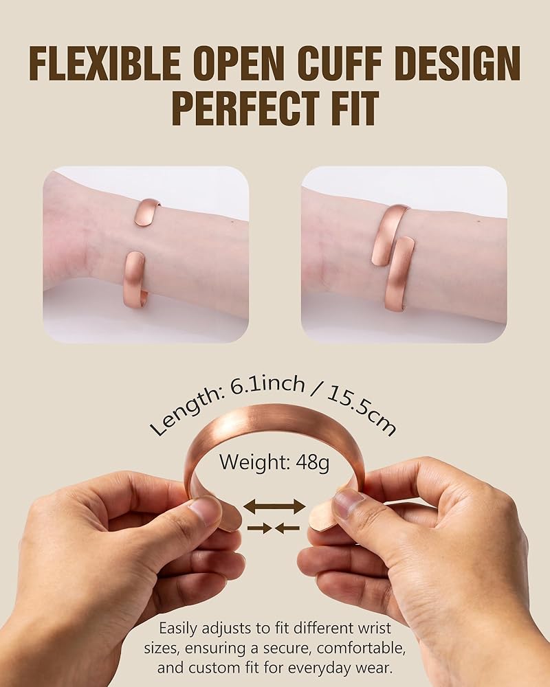 Timeless Unisex Style — Clean, minimalist cuff design with a smooth polished surface, copper cuff bracelets suitable for both men and women and easy to pair with everyday or formal outfits.