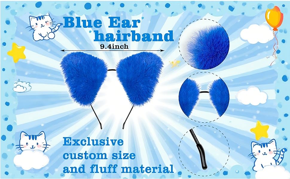 Adjustable Fit: One-size headband with flexible frame fits most adults. The bule cat tail has iron wire inside, so you can adjust the shape you want