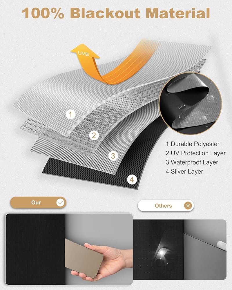 【Versatile Use】These portable blackout curtains are great for bedrooms, skylights, temporary blackout shades for windows, nurseries, RVs, home theaters, and travel. Available in various sizes, they are perfect for night shift workers, infants, renters, and anyone who requires a darkened sleeping environment during the day