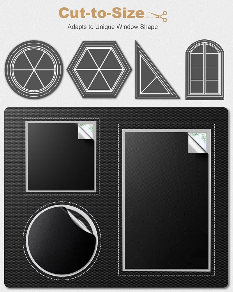 【Install in Just 30 Seconds!】Each blackout window cover includes pre-installed double-sided Velcro tape—simply peel and stick for instant mounting. We provide multiple size options to ensure a perfect fit. Select a size slightly larger than your window for optimum blackout effect, and avoid the need for cutting or adjustments