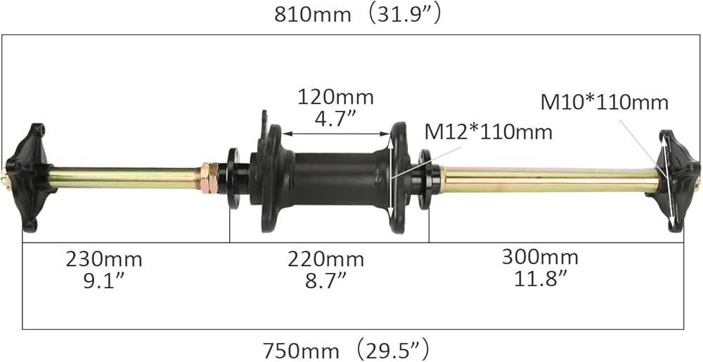 • 32" Overall Axle Length – Axle measures 810mm (32") end to end with 750mm (29.5") wheel spacing