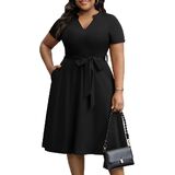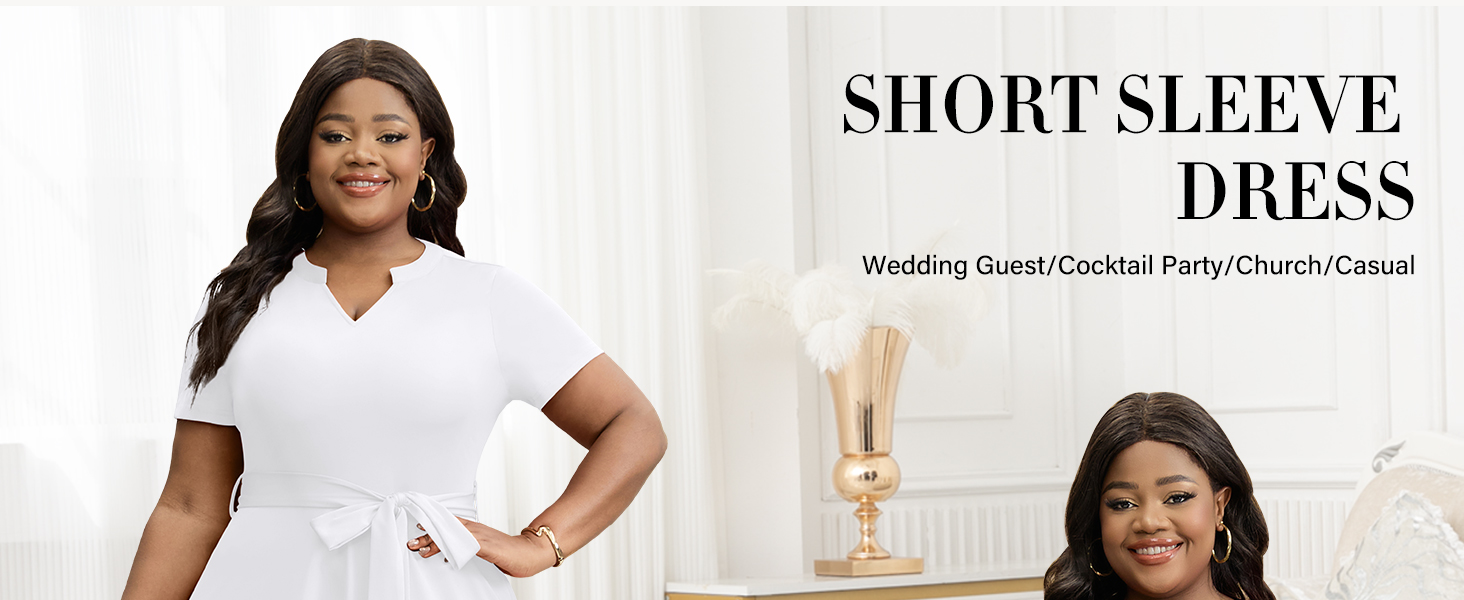 【Premium Material】Made of 95% polyester and 5% Elastane, the V-neck plus size dresses for curvy women is designed to provide a sense of fitted, airy comfort. High quality stretchy fabric with a nice drapey effect, not easy to wrinkle.