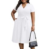 【Pockets & Belt】A complementary belt is included with the plus size casual dress, allowing you to cinch it at the waist for a more defined silhouette, while 2 slanted pockets are specifically designed for storing small items like your keys.