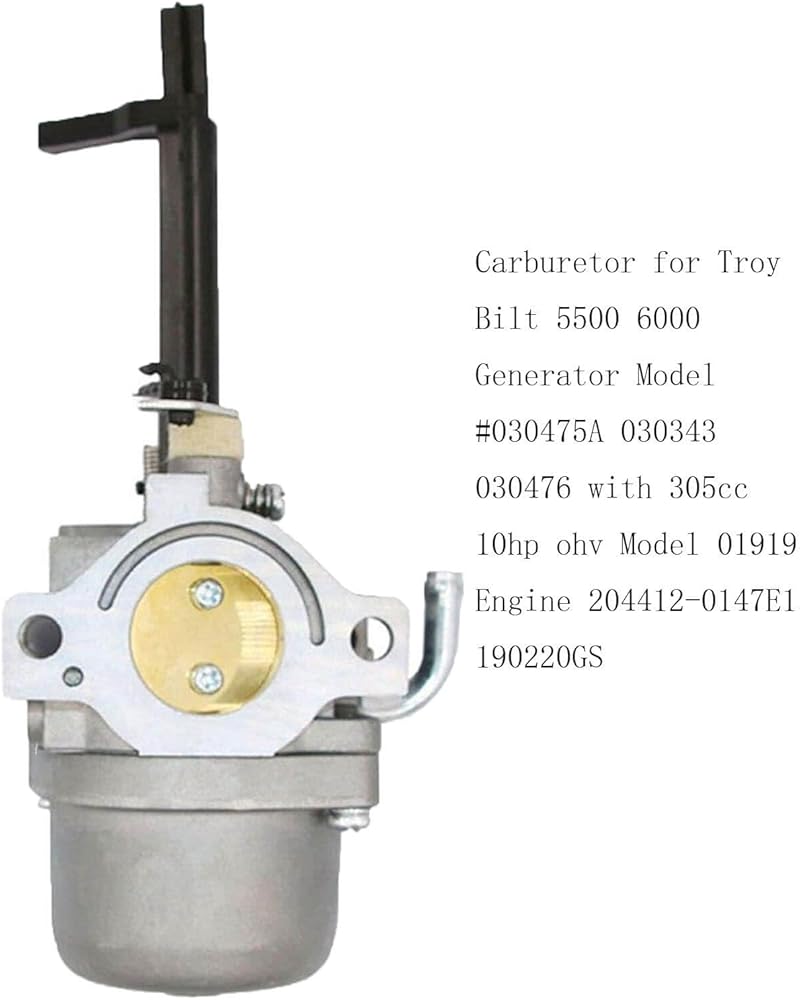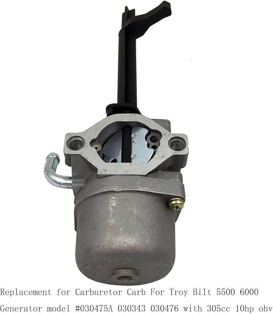 Compatible with Carburetor for Troy Bilt 5500 6000 Generator Model #030475A 030343 030476 with 305cc 10hp ohv Model 01919 Engine 204412-0147E1 190220GS