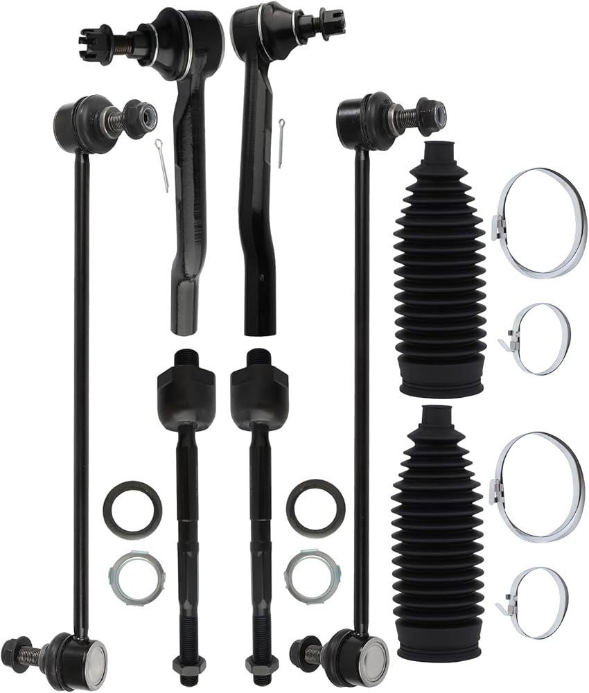 ITEM DETAILS: 1 Front Right Outer Tie Rod End, 1 Front Left Outer Tie Rod End, 1 Front Right Sway Bar End Link, 1 Front Left Sway Bar End Link, 2 Steering Rack Boot, 2 Inner Tie Rod End