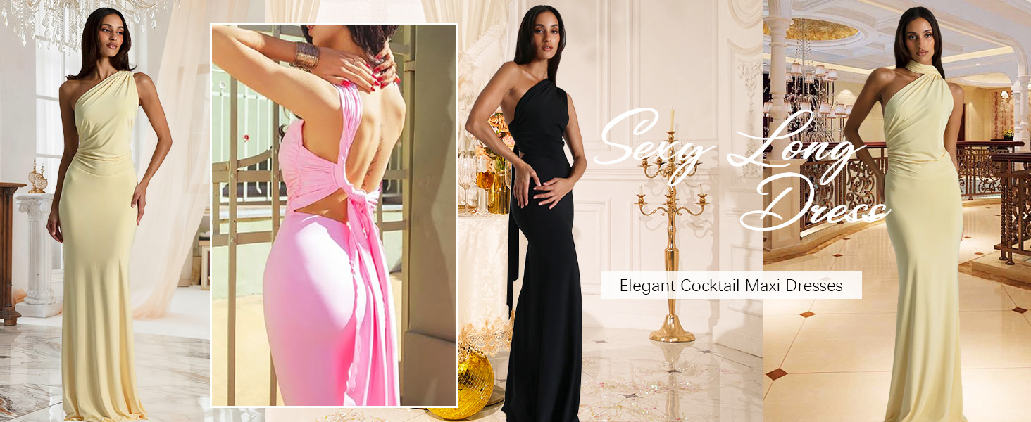 Features: Sexy long dress features with one shoulder.Sleeveless and low back detailing. Adjustable ties for versatile wear. Contoured waistline, tight fitting set off your sexy and charming, endow you with nobility temperament.