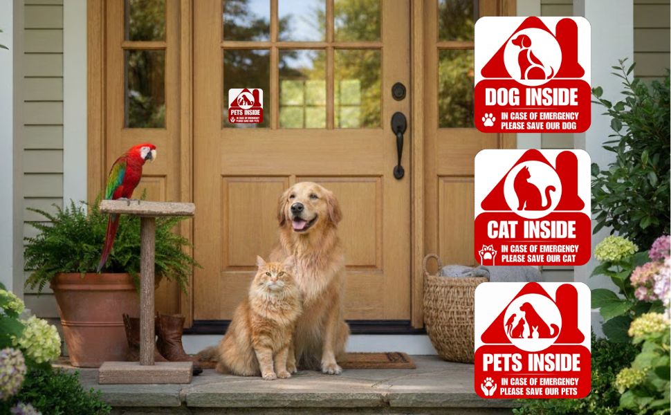 4 PACK FOR MULTIPLE HOME LOCATIONS - Includes four Cat Inside emergency alert stickers designed for placement on multiple windows and doors throughout the home.