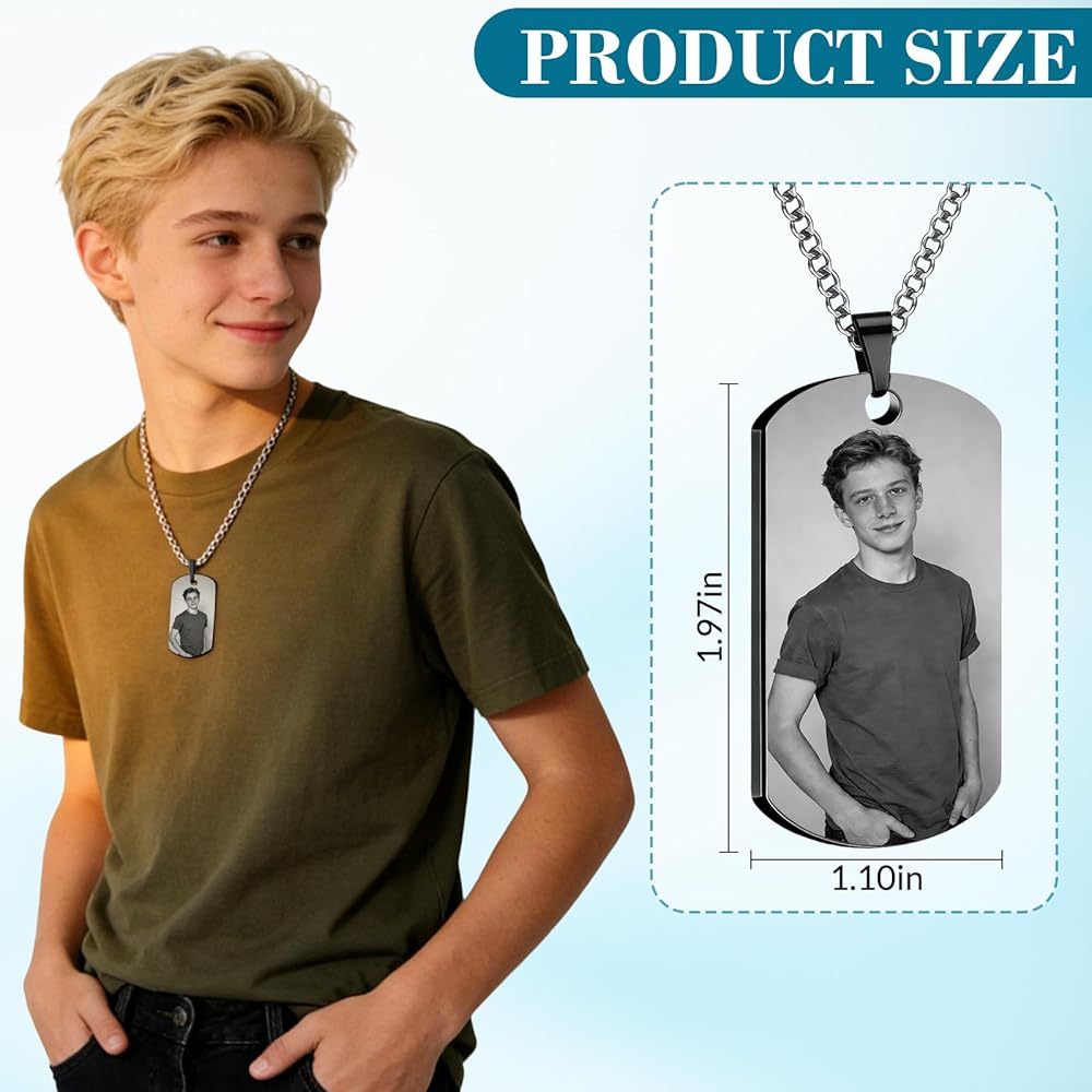 Crafted from high quality stainless steel, this dog tag necklace features a sleek, timeless design that complements both everyday outfits and special occasions. The front showcases your chosen photo with laser engraving technology, rendering every detail vividly clear; The reverse side can be engraved with names, dates, or heartfelt messages, creating a truly one-of-a-kind necklace.