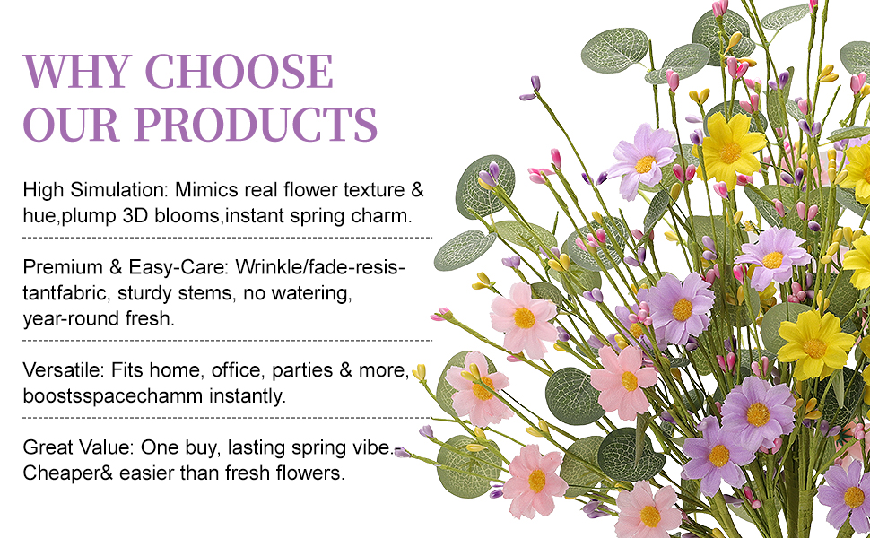 NO MAINTENANCE, LASTING BEAUTY: Unlike fresh flowers, these artificial stems require no water or sunlight. They will maintain their vibrant color and fullness year after year, offering a reusable and lasting decorative solution for spring and beyond.