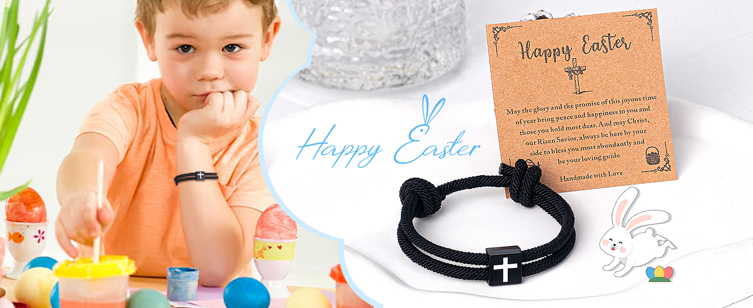 【Happy Easter Gifts】This exquisite cross bracelet with Happy Easter greeting card and presented in a nice gift box, Ready for your little ones Easter basket.This listing is for one "Easter Bracelets for kids, boys, teens" of your choice. so great easter gifts for kids, boy, toddler
