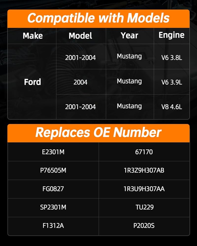 Note: Not fit 2003–2004 Mustang SVT Cobra 4.6L, because all Cobra models from these years are supercharged (DOHC) and use a different high-flow fuel pump system