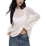 Feature: See Through Sheer Knit Sweater/ Hollow Out Knit Pullover Top/ Ribbed Knit Top Shirt for Women/ Flared Sleeve Knitted Sweater/ Solid Color Roll Long Sleeve / Oversized Loose Fitted/Stretchy Crew Neck Lightweight Sheer Knit Pullover Sweater Shirt for women and girls.