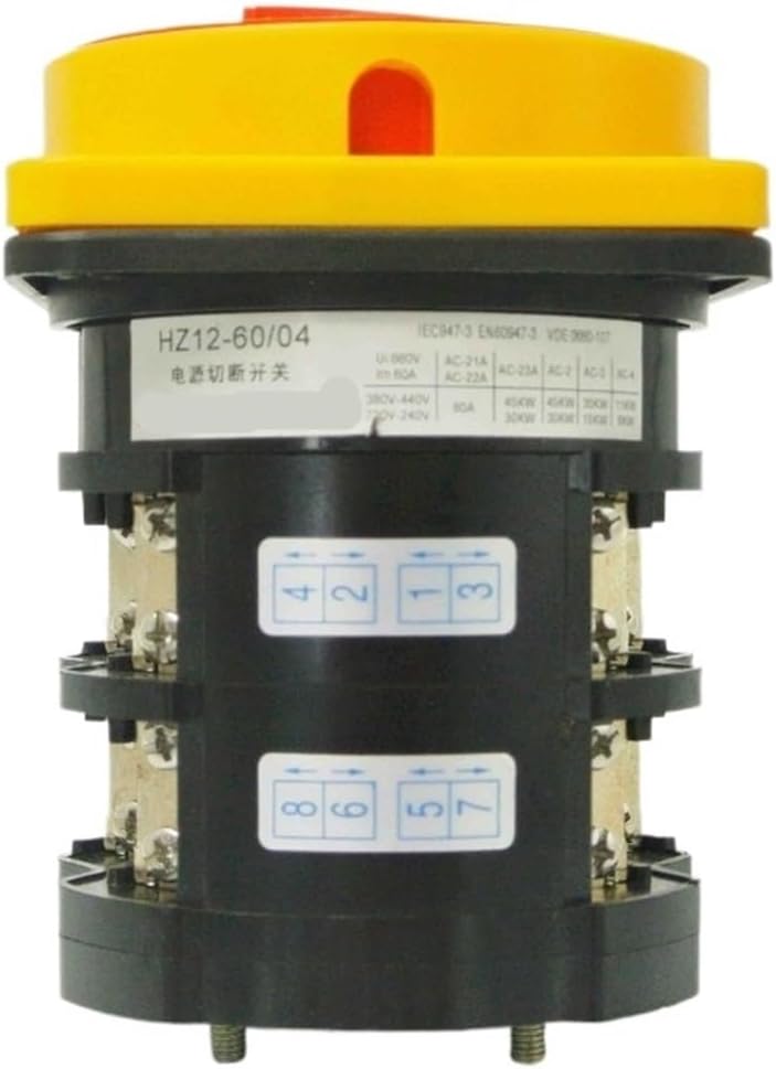 Rotary Switch Knob 2 Position 0-1 660V 60A Poles 4 Terminals Padlock Changeover Cam Main Power Cut Off HZ12-60/04