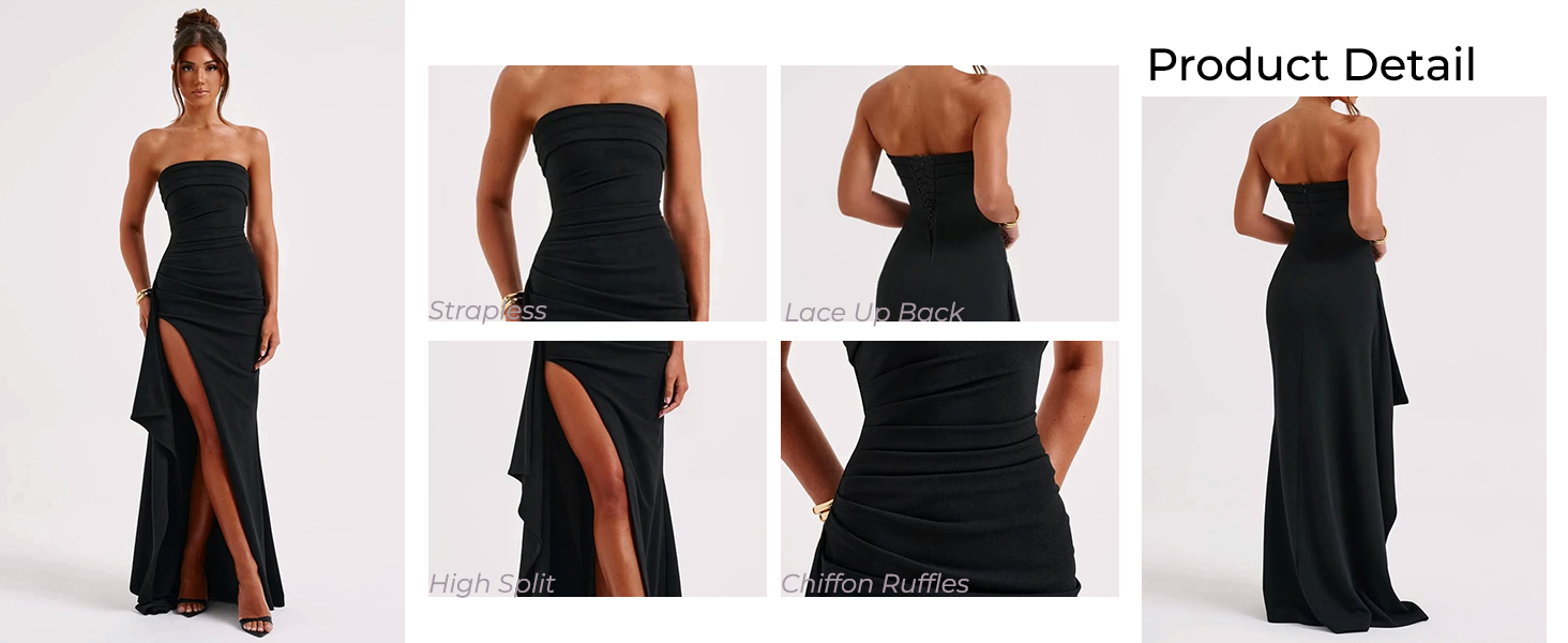 Strapless Sweetheart Neckline:Designed with a stunning strapless sweetheart neckline, this dress beautifully highlights the shoulders and collarbone, creating a timeless and romantic look. The structured bodice provides a secure and flattering fit.