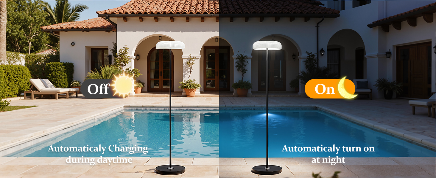 【Long-Lasting Performance】Equipped with 4000mAh battery, this battery operated floor lamp provides to 20 hours of continuous lighting in low brightness mode. The adjustable brightness and rechargeable lamps for home design makes it a convenient outside dimmable lamp.Perfectly as lámparas solares para patio, offering steady illumination from dusk till dawn.