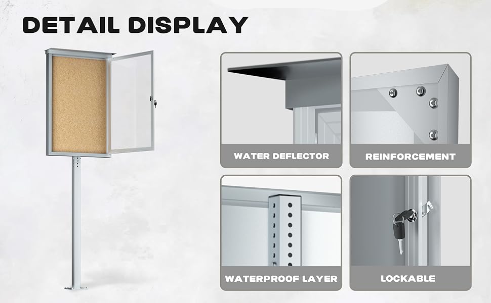 Weatherproof Design for Outdoor/Indoor Use - Crafted with a sealed aluminum frame and durable weather-resistant materials, this enclosed bulletin board protects notices, flyers, and documents from rain, snow, dust, and UV rays. Perfect for community centers, parks, schools, offices, or storefronts—maintains clear visibility and content integrity in all weather conditions.