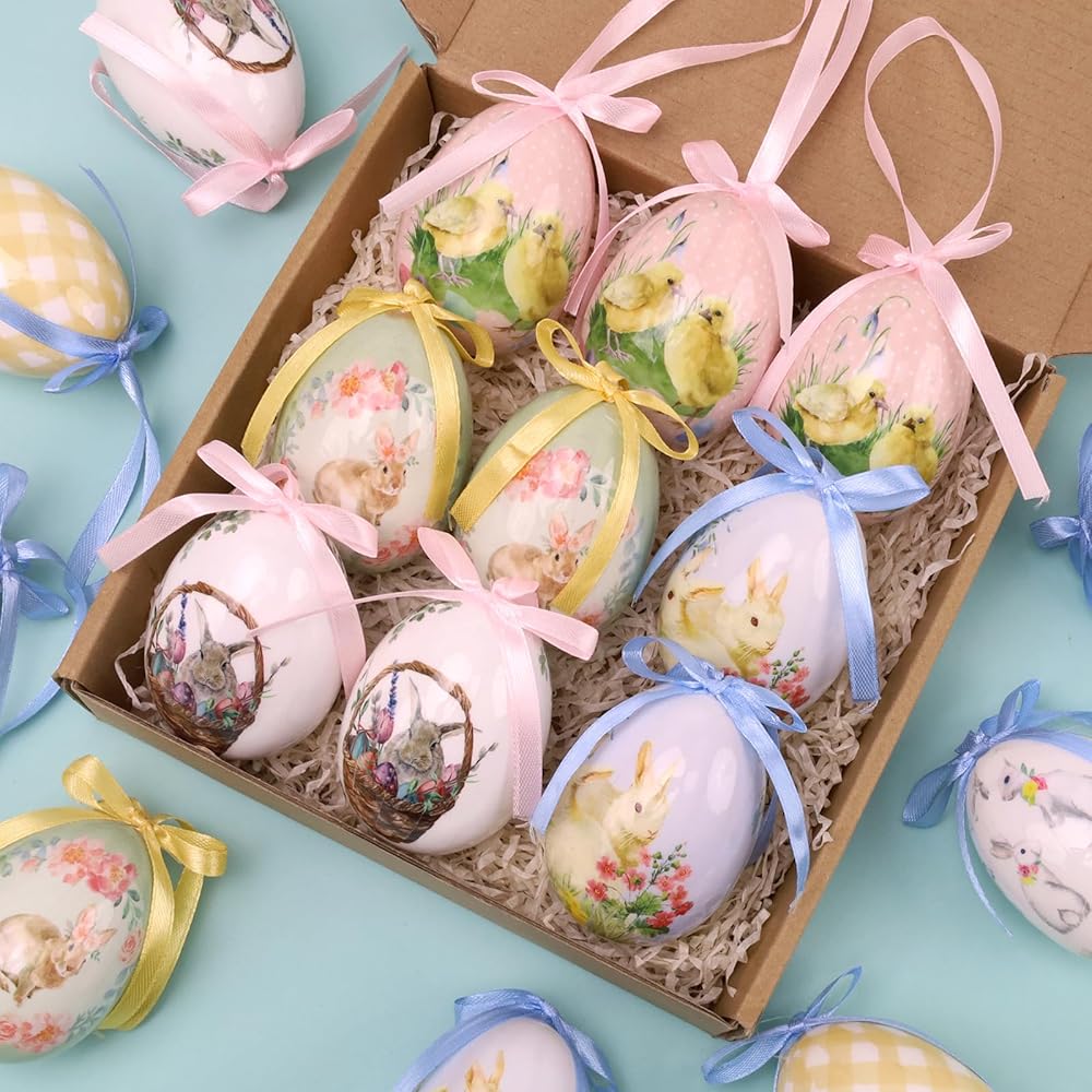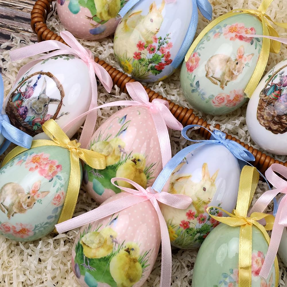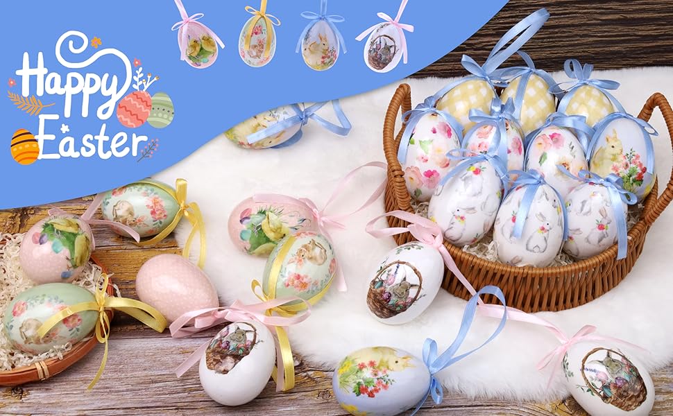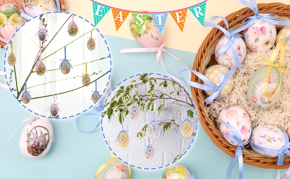 Colorful craft Easter eggs: Every Easter egg has a ribbon bow, which is beautiful and practical, that can help you hang them wherever you want, colorful Easter egg ornaments are not only perfect for decorating Easter trees and baskets, and can also make beautiful home decorations or as party favors.