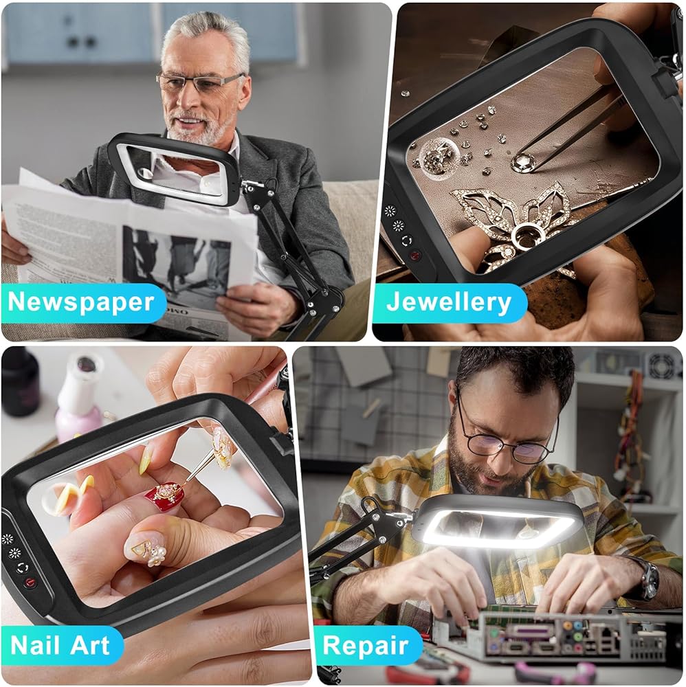 6"x 4" Oversized Lens: Compared to other magnifiers, this lighted desk magnifier boasts an extra-large 6.2"x 4.2" rectangular lens, covering a super-wide viewing area. Whether reading or engaging in crafts and hobbies, it meets your need for a large field of view.