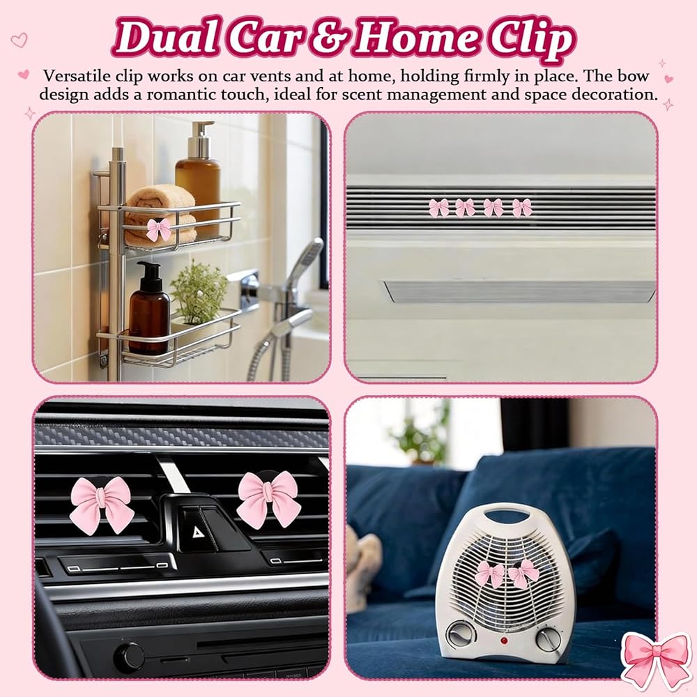 Versatile Car Vent Clips Cute Design: These versatile pink bow car accessories for women fit most cars while adding an adorable and functional flair