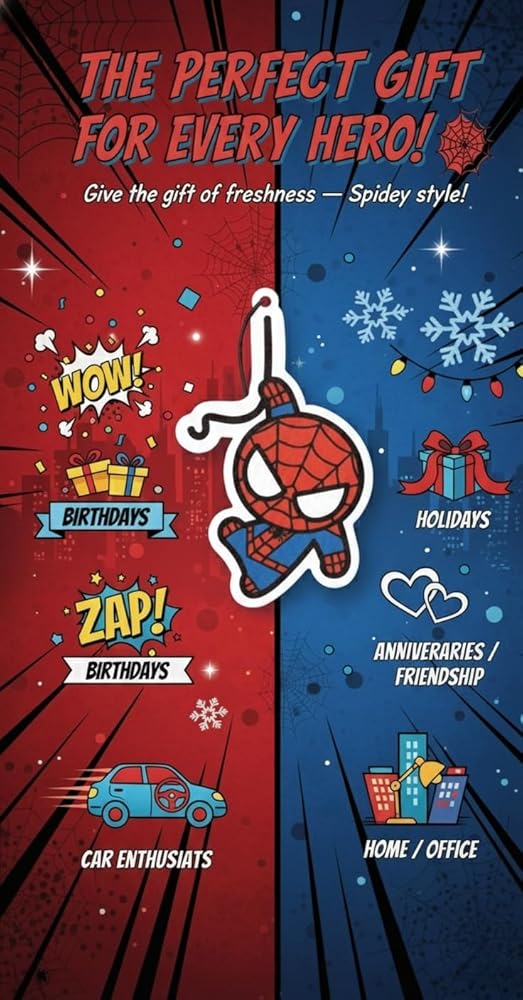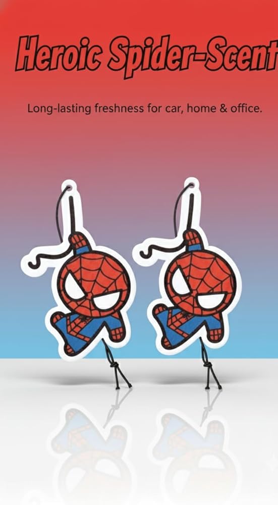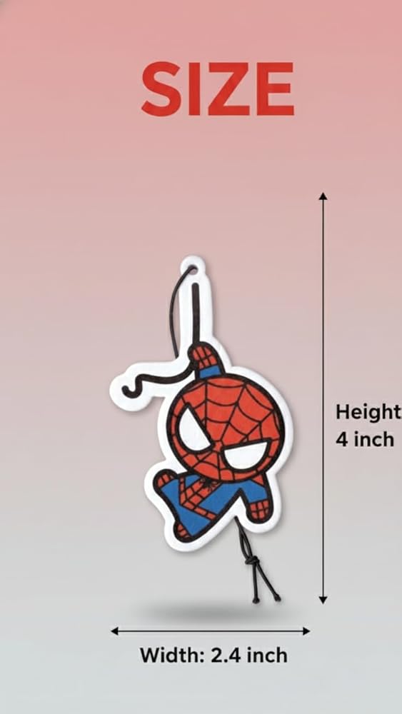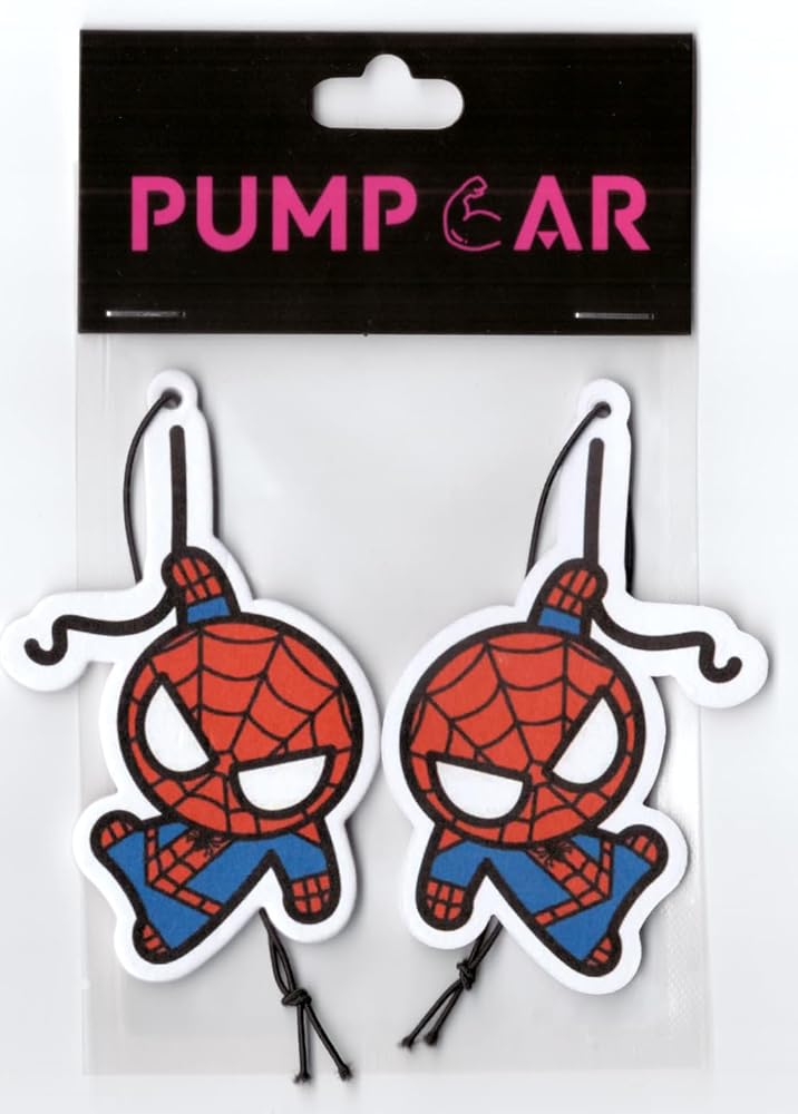 Introducing our original PumpCar design showcasing spidey car air freshener, the perfect addition to your car's interior. Measuring 4 x 2.4 inches, this paper air freshener features a striking spidey design that will add a touch of personality to your vehicle. Not only does it look great, but it also works hard to keep your car smelling fresh and clean with its delightful Cherry scent. Infused with high-quality fragrance, our air freshener eliminates unwanted odors and provides a long-lasting Cherry aroma that you'll love. Easy to use, simply hang it from your rearview mirror or any other convenient spot in your car. With its compact size, it won't take up too much space and is perfect for both large and small vehicles. Experience the perfect combination of style and function with our spidey car air freshener. Order yours today and enjoy a fresh and inviting Cherry scent every time you step into your car.