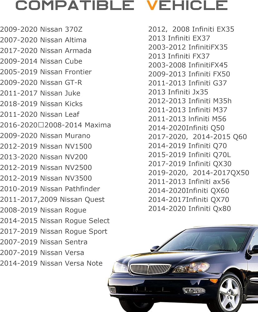 -Applicable: FX35, FX37, FX45, FX50, M35, M35h, M37, M45, M56, Q50, Q60, Q70, Q70L, QX50, QX56, QX70, QX80 etc.