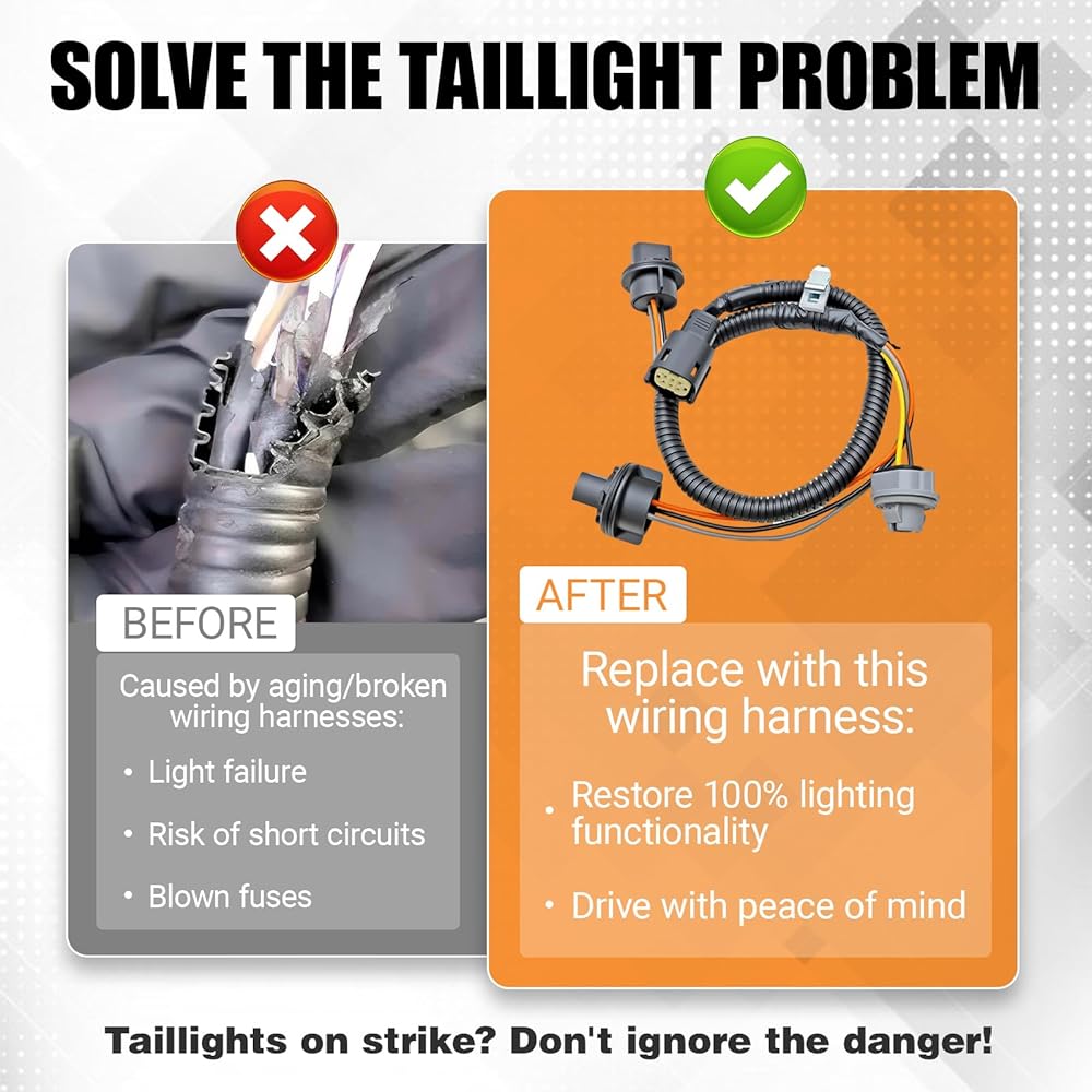 [Premium Durability] This tail light wiring harness utilizes premium materials that offer excellent electrical conductivity, low resistance, and corrosion resistance. The wires feature high flexibility, making them more resistant to vibration and repeated bending without breaking. The connectors are equipped with rubber seals to enhance waterproofing, dustproofing, and moisture resistance. They are impact-resistant and wear-resistant, ensuring a long service life