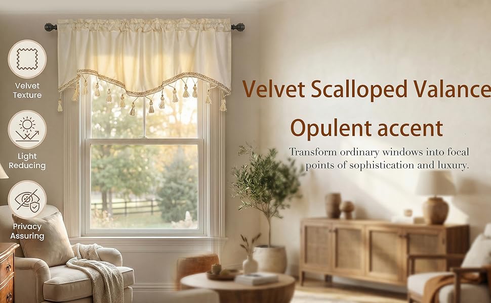 【MATERIAL】 - Made of advanced velvet fabric,this short window valance is thick,soft and assistant for long time use,can well block out part of the light,and protect furniture from direct sunlight while helping to enhance privacy