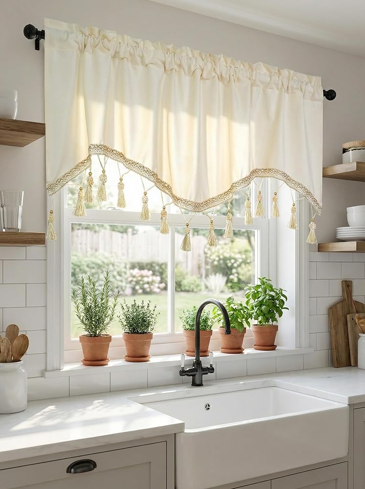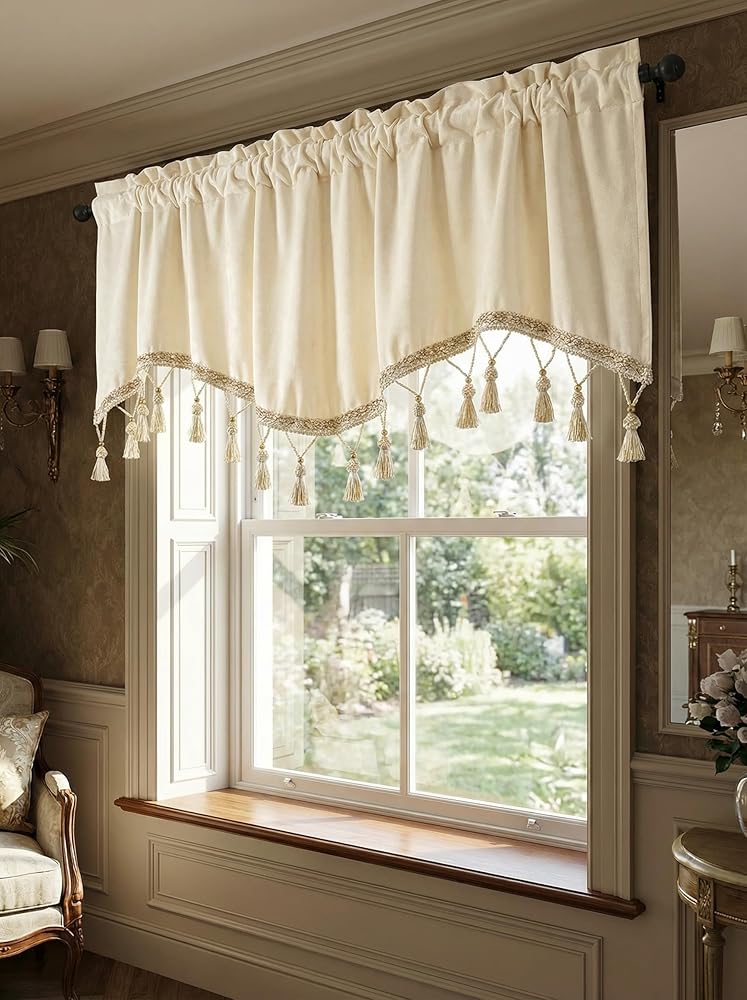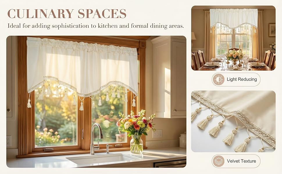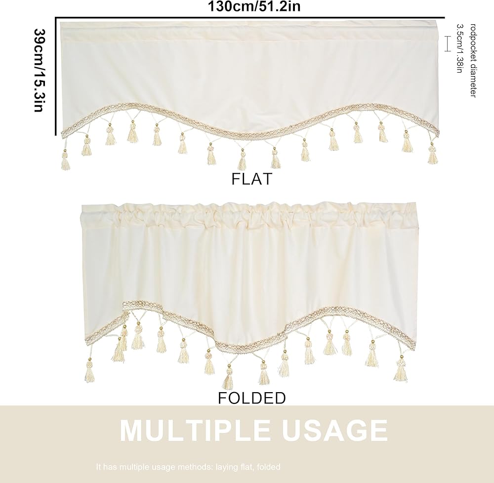 【LUXURY DESIGN】 - Decorate your home window with this antique style valance curtains,exquisite and flexible tassels increase the drape of the curtains,will delivery luxurious touch and elegant ambiance for your room