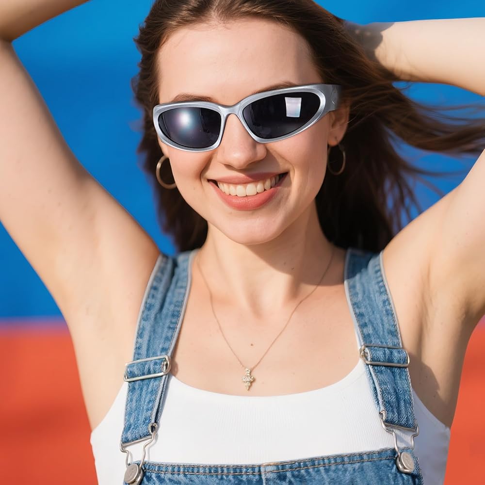 Trendy Y2K & Futuristic Style: Rock the iconic 2000s sunglasses revival.These cool sunglasses feature flexible wrap around sunglasses frames with sleek lines and a futuristic sunglasses look. The surround design fits various face shapes, enhancing your fashion sunglasses vibe