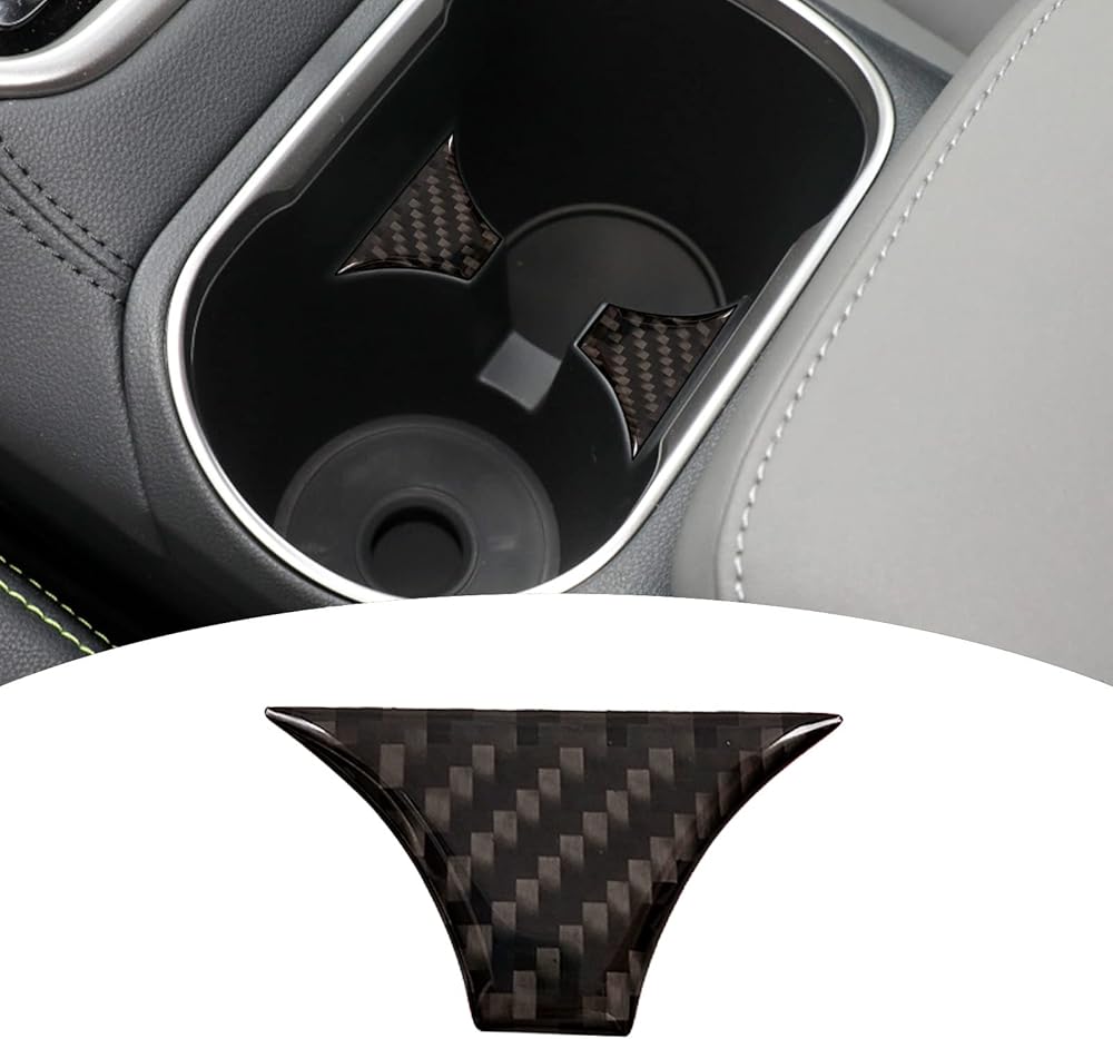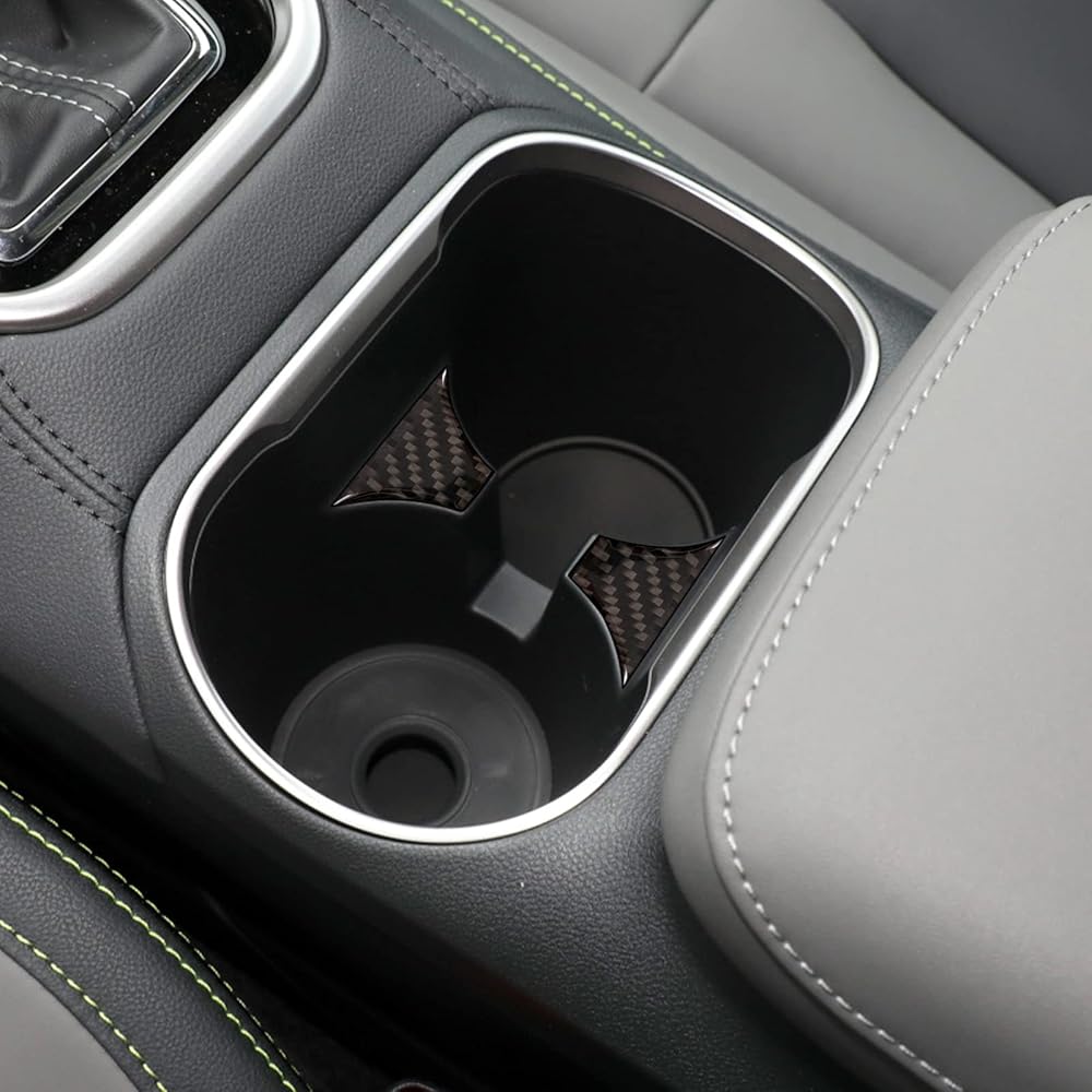 Bilisin Carbon Fiber Sticker Compatible with Central Control Water Cup Holder Panel Trim Interior Accessories for Subaru Outback 2021 2022 2023(2Pcs Black)