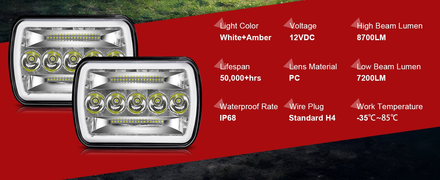 【SUPER BRIGHTNESS】: Lumens: 8700LM for high beam/pc, 7200LM for low beam/pc, using newest generation high-strength and dense LED chips, 200% brighter than the factory Halogens lights. More pure bright-white beam and wider field of light vision than similar 5x7 lamps. The Super Sharp and Straight cut off greatly ensure driver's safety in traffic.